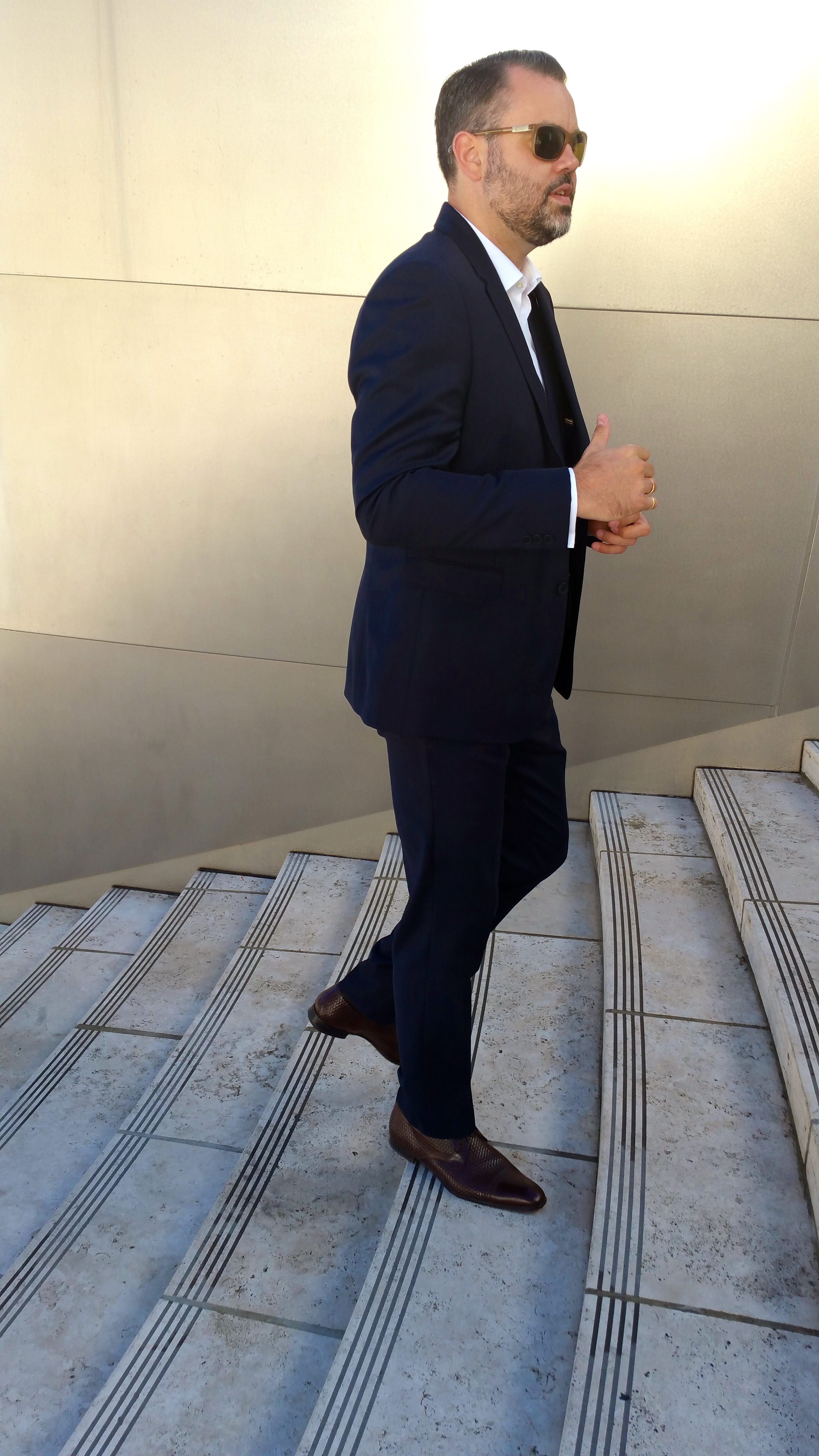 Jb is wearing Ted Baker, Boss, Giorgio Armani sunglasses and Mezlan shoes.